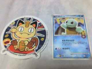 5点購入で「てまねきニャースステッカー」、さらにゼニガメのカードをGET。