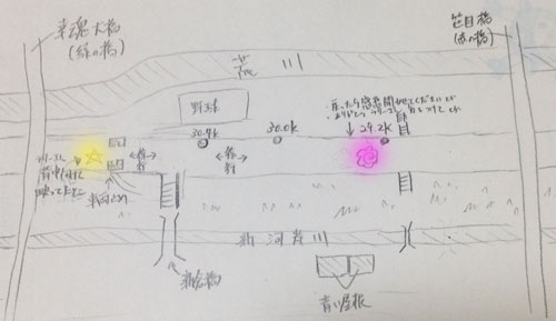 それ以外のシーンの場所が見当たらなかったので赤い橋(笹目橋)に向かって歩いていく。