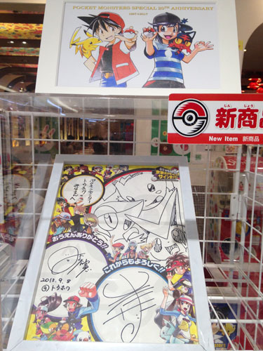 ポケセントウホク宛にポケスペのサイン色紙が飾られていました。
