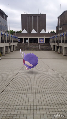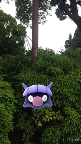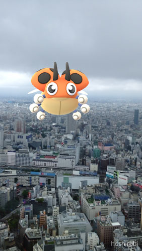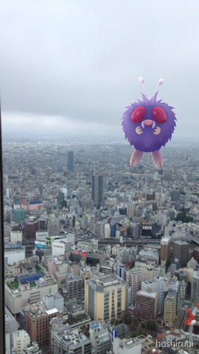 曇天の景色でポケモンGO。都心に現れた巨大レディバに巨大コンパン…。