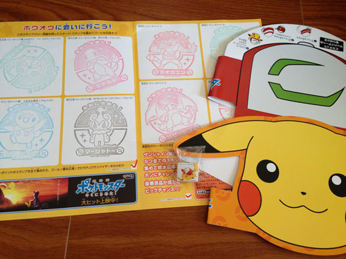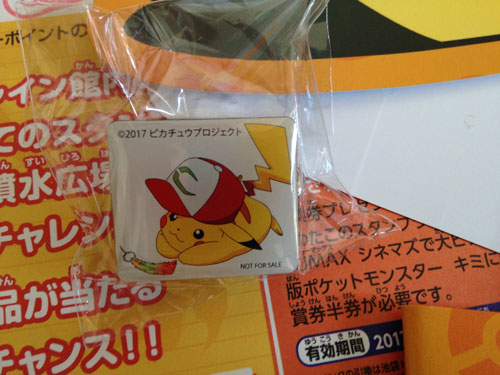 参加賞のサトシの帽子、スタンプ4個でピカチュウのサンバイザー、